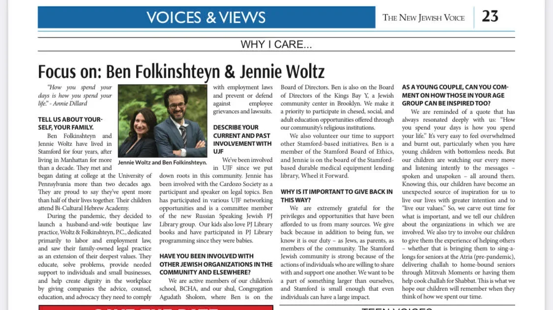 Check out this article about us in the October issue of The New Jewish Voice.